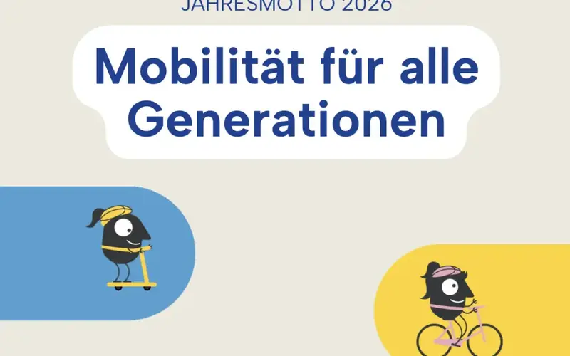 Die EUROPÄISCHE MOBILITÄTSWOCHE findet jedes Jahr vom 16. bis 22. September statt. Im Jahr 2026 liegt der Schwerpunkt auf fairer Mobilität für alle Generationen! Ziel dieser Woche ist es, Bürger:innen und Entscheidungsträger:innen in Städten, Gemeinden und Regionen einzuladen, alltagstaugliche, klimafreundliche Verkehrsmittel kennenzulernen. Aktive Mobilitätsformen wie das Zu-Fuß-Gehen und Radfahren können dabei genauso ausprobiert werden, wie die Nutzung öffentlicher Verkehrsmittel oder Sharing-Fahrzeuge. Gleichzeitig eignet sich die Europäische Mobilitätswoche um dauerhafte Projekte mit mehr öffentlicher Aufmerksamkeit zu starten. So kann Lust auf mehr Aktive Mobilität entstehen!