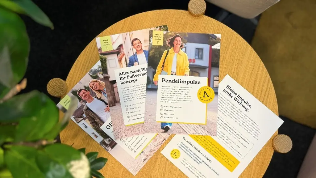 Gemeinsam geht’s leichter, daher möchte Österreich zu Fuß Gemeinden, Städte, Regionen, Vereine und Unternehmen unterstützen. Mit praxisnahen Anleitungen, kostenfreien Materialien zur Unterstützung und Kommunikation sowie einem wachsenden Netzwerk vermittelt die Initiative das nötige Know-How und schafft Synergien, um konkrete Maßnahmen und Aktivitäten umzusetzen. Flyer, Poster und Social-Media-Pakete können mit dem Gemeindelogo individualisiert und zum Bewerben eigener Veranstaltungen verwendet werden. Schritt-für-Schritt-Anleitungen helfen bei der Gestaltung von fußverkehrsfreundlichen Rahmenbedingungen und zur Etablierung einer Gehkultur im Ort. Ganz gleich, ob Sie noch ganz am Anfang Ihrer Fußverkehrs-Reise stehen oder schon mittendrin.